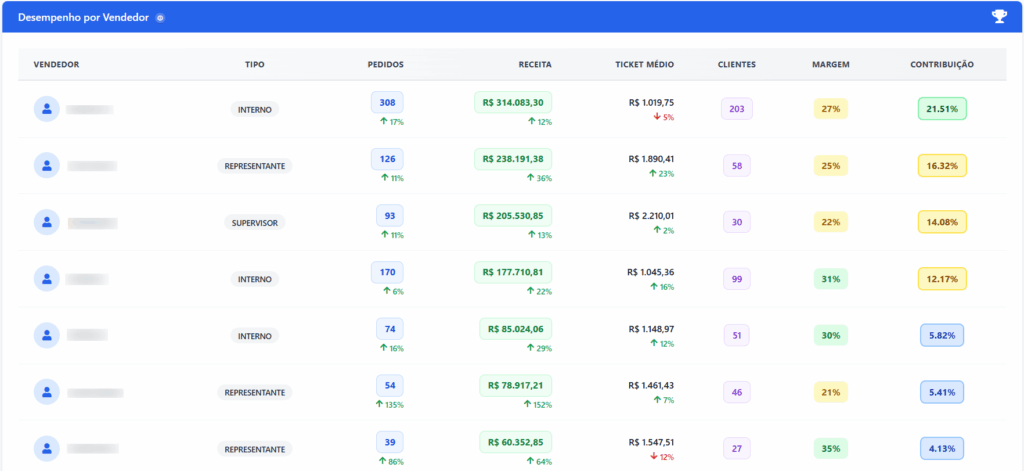 Esses dados alimentam a estratégia e facilitam a tomada de decisão sobre compras, campanhas e equipe de vendas.